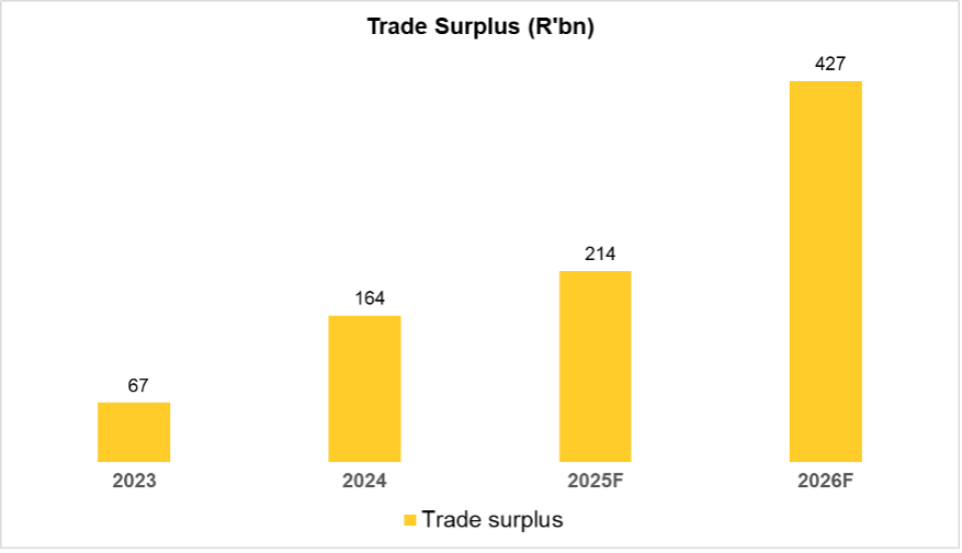 With the trade surplus driving additional demand for Rands, our currency has strengthened from R18.89 to R16.57 to the US Dollar. It is quite possible that this trend could continue in 2026.