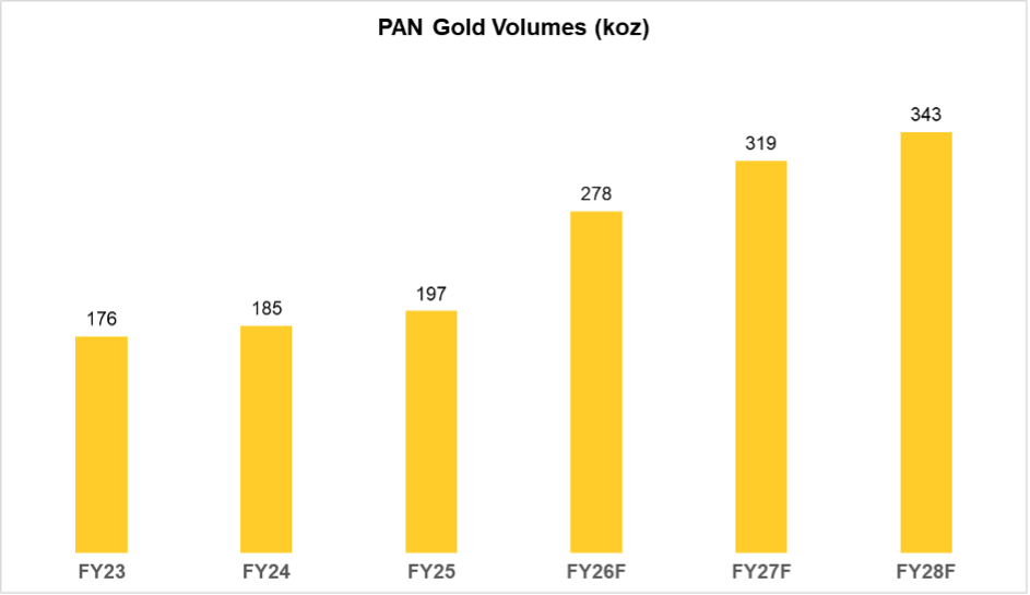 Source: https://www.panafricanresources.com/ and Peregrine Capital forecasts